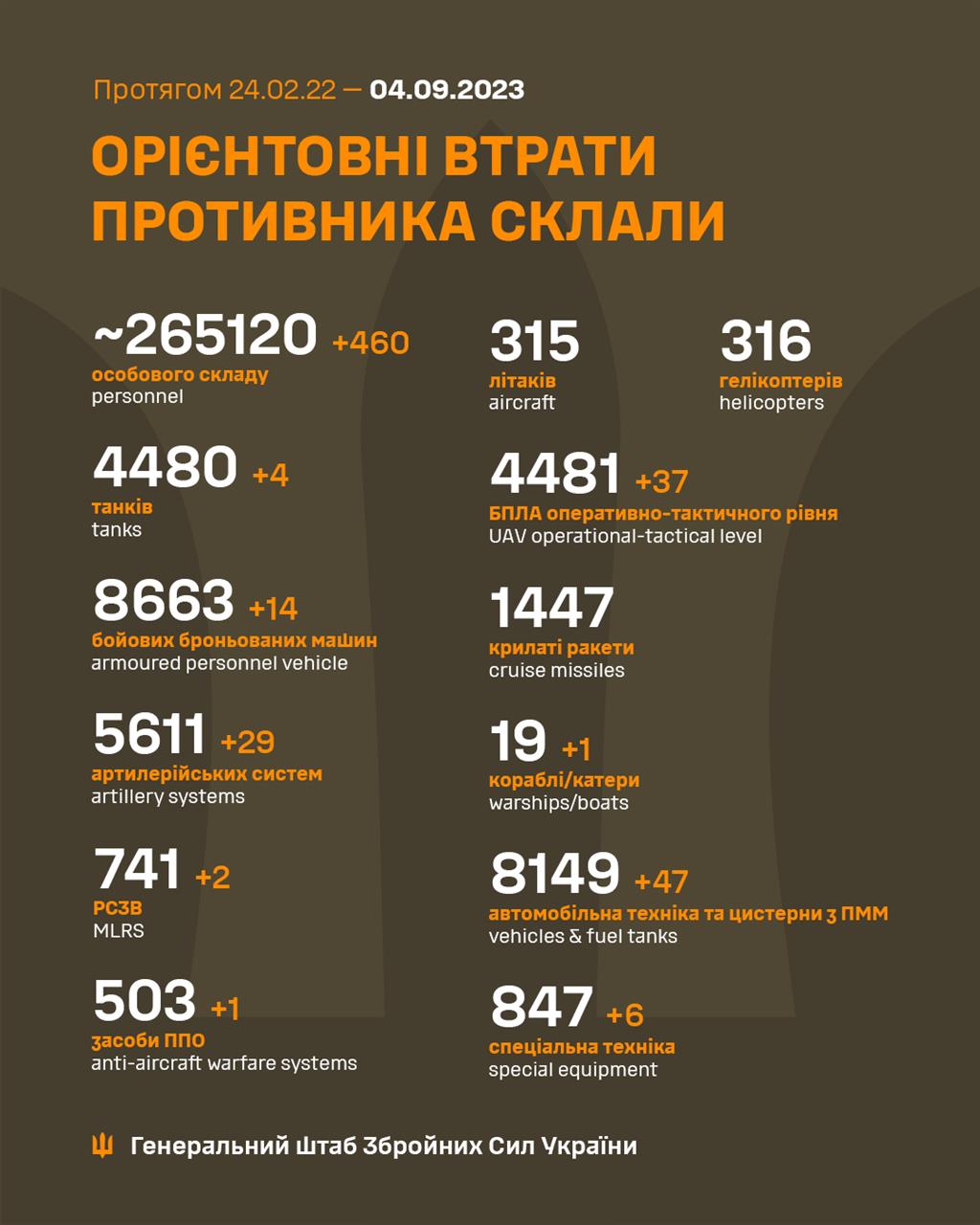 До вашої уваги інформація щодо російського вторгнення в Україну за підсумками 4 вересня.