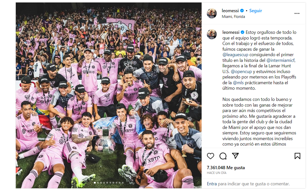 Я хочу подякувати всім людям у клубі та в Маямі за їх підтримку. Я впевнений, що ми розділимо нові чудові моменти, як це було в останні місяці", — написав Мессі.