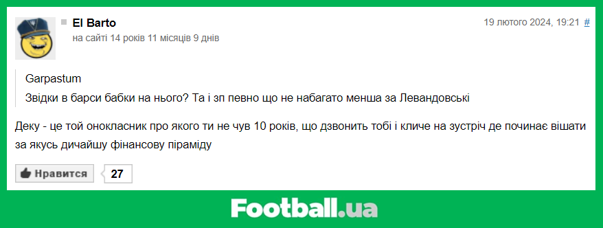 Football.ua продовжує розважальну рубрику, в рамках якої ми обираємо найкращі коментарі читачів за минулий тиждень (19.02.2024 — 25.02.2024).