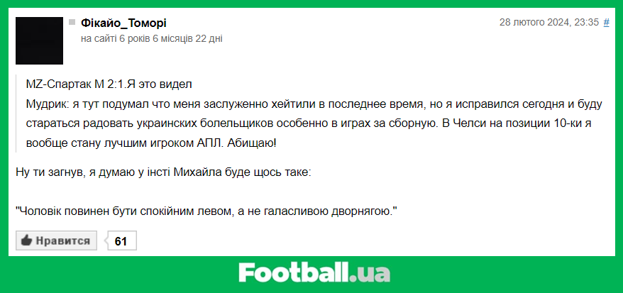 Football.ua продовжує розважальну рубрику, в рамках якої ми обираємо найкращі коментарі читачів за минулий тиждень (26.02.2024 — 03.03.2024).