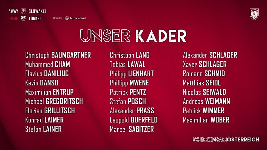 Місця у заявці не знайшлося для трьох гравців Рапіда, причетних до гомофобних скандувань після віденського дербі проти Аустрії. Йдеться про голкіпера Нікласа Гедля, а також нападників Марко Грюлля і Гвідо Бургшталлера.