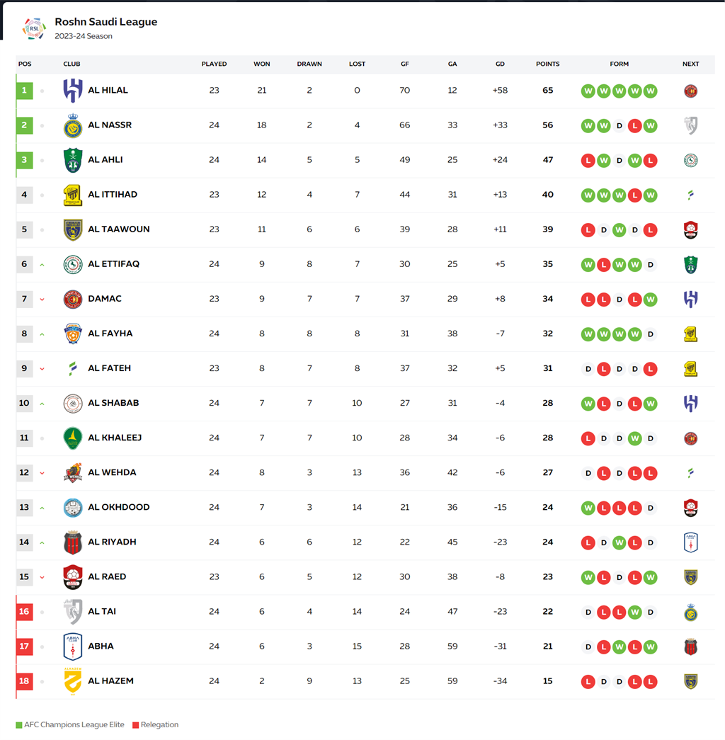Станом на зараз, команди продовжують утримувати друге і третє місця турнірної таблиці чемпіонату Саудівської Аравії, які гарантують їм участь у наступному розіграші Ліги чемпіонів АФК.