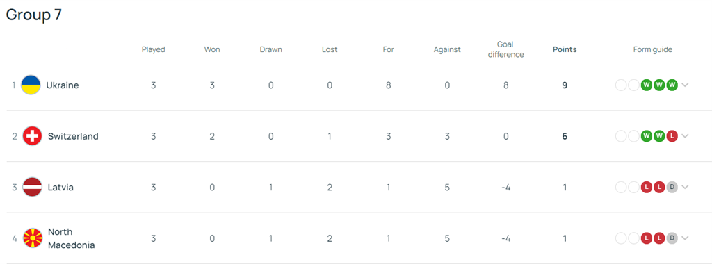 Підсумкова турнірна таблиця групи: