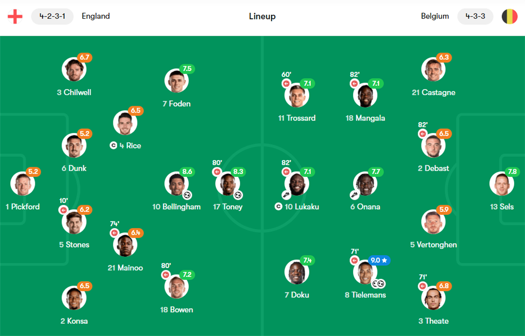 Здавалося, що матч так і завершиться перемогою Бельгії, проте вже у компенсований час Джуд Беллінгем зрівняв рахунок та допоміг Англії уникнути поразки на очах власних вболівальників.