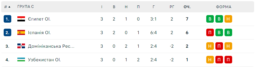 Єгиптяни несподівано здолали іспанців, обійшовши їх у турнірній таблиці квартету. Колектив Рожеріо Мікале зустрінеться з другою командою групи D, тоді як команді Санті Денії протистоятиме її переможець.