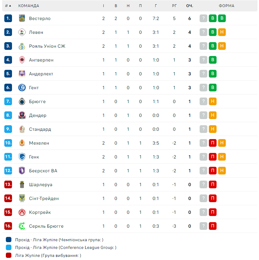Турнірна таблиця чемпіонату Бельгії зараз виглядає наступним чином: