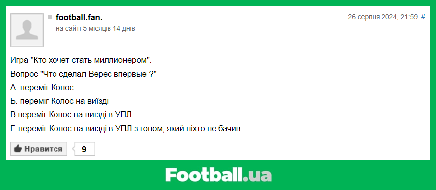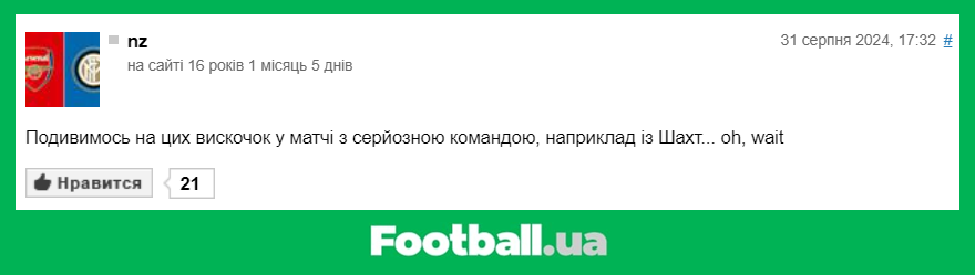 Football.ua продовжує розважальну рубрику, в рамках якої ми обираємо найкращі коментарі читачів за минулий тиждень (26.08.2024 — 01.09.2024).