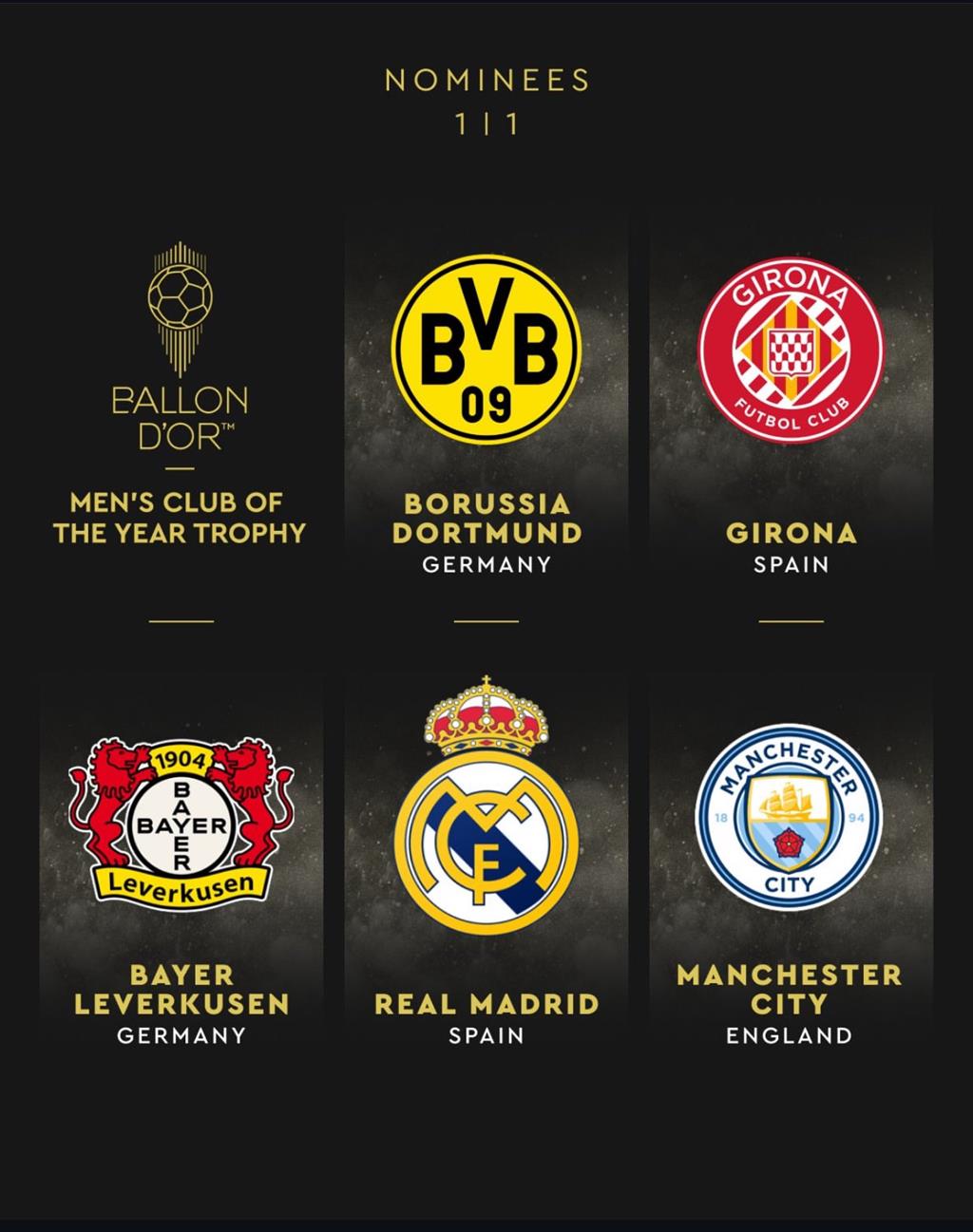 Відомий французький журнал France Football оголосив список номінантів на звання найкращого чоловічого футбольного клубу, який визначиться на щорічній церемонії вручення Золотого м'яча.