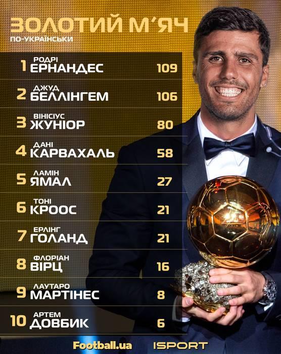 Цікаво, що Родрі жодного разу не ставили п'ятим, а ось Ерлінг Голанд став лідером по знаходженню на останньому щаблі ТОПу — 5 разів.