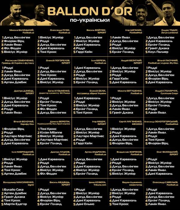 По чотири респонденти не додали в свій ТОП-5 або Родрі, або Джуда Беллінгема (Вінісіуса не обрало семеро голосуючих).