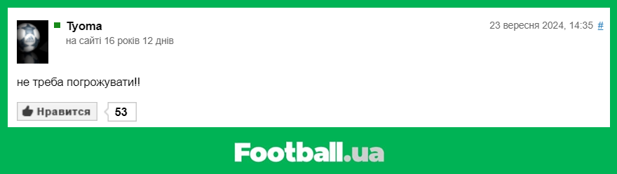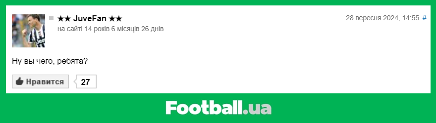 Football.ua продовжує розважальну рубрику, в рамках якої ми обираємо найкращі коментарі читачів за минулий тиждень (23.09.2024 — 29.09.2024).