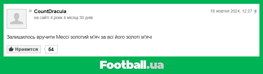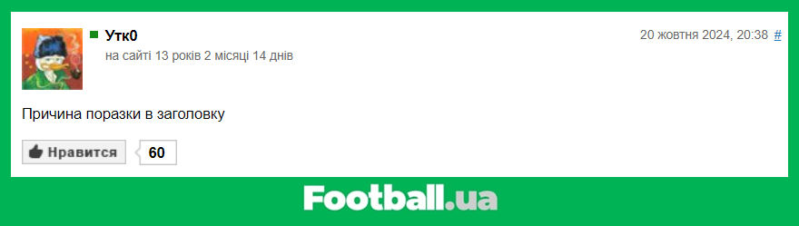 Football.ua продовжує розважальну рубрику, в рамках якої ми обираємо найкращі коментарі читачів за минулий тиждень (14.10.2024 — 20.10.2024).