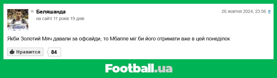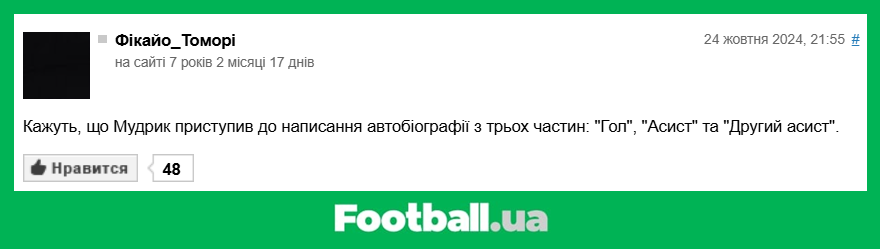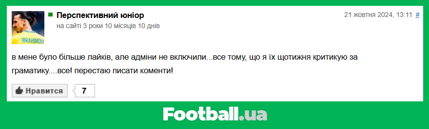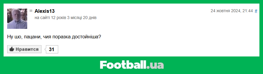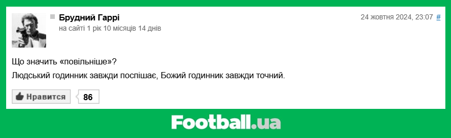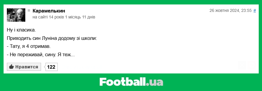 Football.ua продовжує розважальну рубрику, в рамках якої ми обираємо найкращі коментарі читачів за минулий тиждень (21.10.2024 — 27.10.2024).