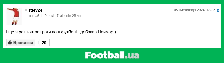 Football.ua продовжує розважальну рубрику, в рамках якої ми обираємо найкращі коментарі читачів за минулий тиждень (04.11.2024 — 10.11.2024).
