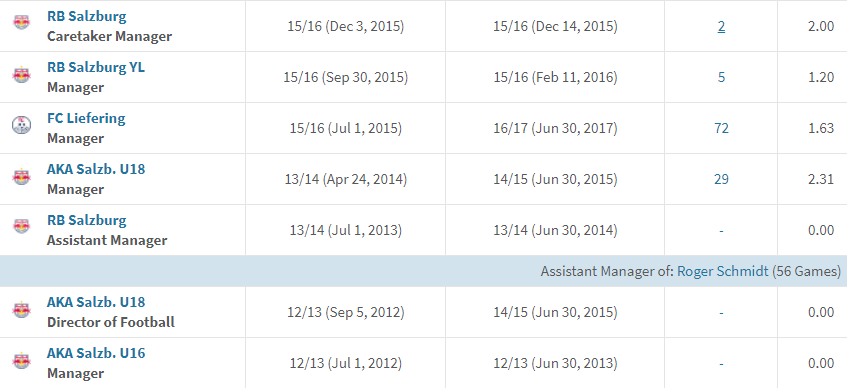 Німецький спеціаліст, покликаний замінити звільненого 16 грудня Пепа Лейндерса, раніше вже працював у структурі австрійського клубу. Протягом двох матчів у грудні 2015 року він виконував обов'язки головного тренера.