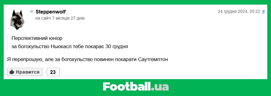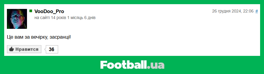 Football.ua продовжує розважальну рубрику, в рамках якої ми обираємо найкращі коментарі читачів за минулий тиждень (23.12.2024 — 29.12.2024).
