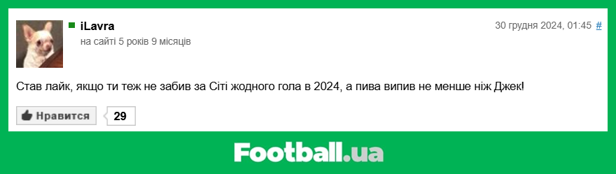🗣Лише 29 наших читачів не забивали за Ман Сіті у 2024 році! Вітаємо з хорошим результатом та прийдешнім новим роком!