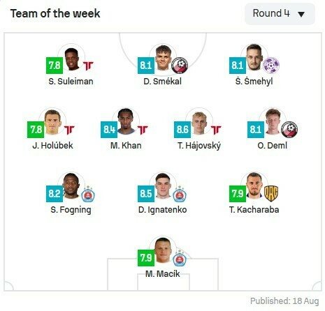 Качараба провів якісний матч за ДАК 1904 проти Татрани (0:0), отримавши оцінку 7,9 балів, а Ігнатенко відзначився переможним голом за Слован у ворота Скаліци (1:0) – його гру оцінили у 8,5 балів.