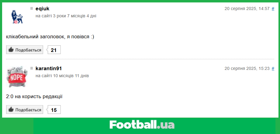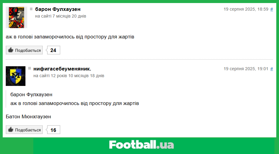 P. S. Цікавих подій у світі футболу за минулий тиждень було достатньо, тому вкотре хочеться перепросити авторів інших смішних коментарів, які з певних причин не потрапили в сьогоднішній огляд. Моніторинг всіх ваших реакцій на ту чи іншу новину, навіть за такий незначний період, займає багато часу. Саме тому немає можливості побачити усі ваші коментарі.