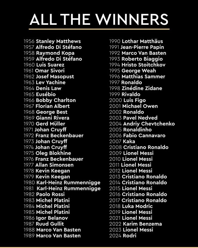 УСІ ПЕРЕМОЖЦІ ЗОЛОТОГО М'ЯЧА ЗА РОКАМИ