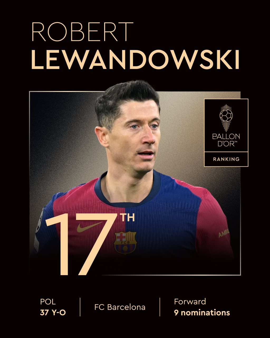 17. РОБЕРТ ЛЕВАНДОВСЬКІ (БАРСЕЛОНА, ПОЛЬЩА)