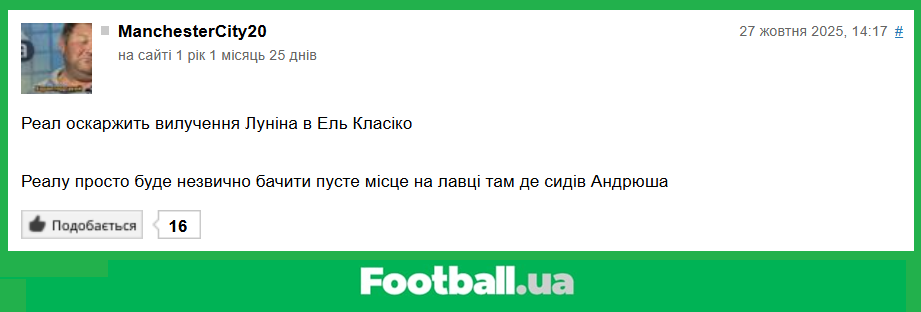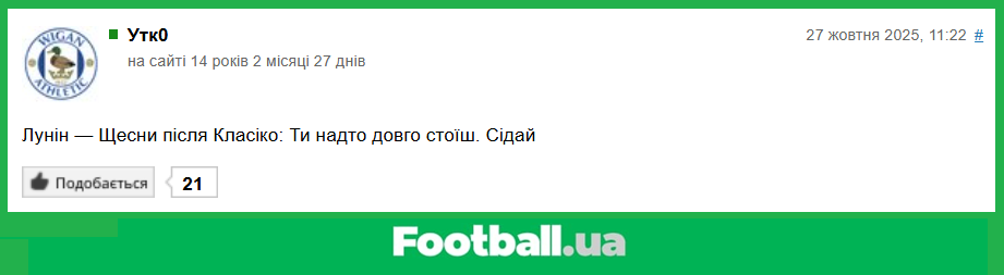 P. S. Цікавих подій у світі футболу за минулий тиждень було достатньо, тому вкотре хочеться перепросити авторів інших смішних коментарів, які з певних причин не потрапили в сьогоднішній огляд. Моніторинг всіх ваших реакцій на ту чи іншу новину, навіть за такий незначний період, займає багато часу. Саме тому немає можливості побачити усі ваші коментарі.