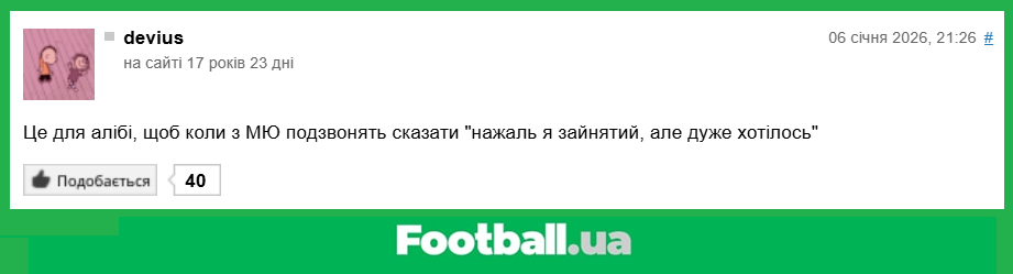 P. S. Цікавих подій у світі футболу за минулий тиждень було достатньо, тому вкотре хочеться перепросити авторів інших смішних коментарів, які з певних причин не потрапили в сьогоднішній огляд. Моніторинг всіх ваших реакцій на ту чи іншу новину, навіть за такий незначний період, займає багато часу. Саме тому немає можливості побачити усі ваші коментарі.