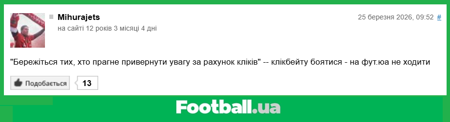Аудиторія Football.ua досить різноманітна, а активні користувачі в коментарях відрізняються чіткою власною позицією щодо різних речей. Є ті, хто активно готовий обговорювати виключно футбольні питання. Є ті, яким подобається пограти з вогнем і також подискутувати на багато інших тем.