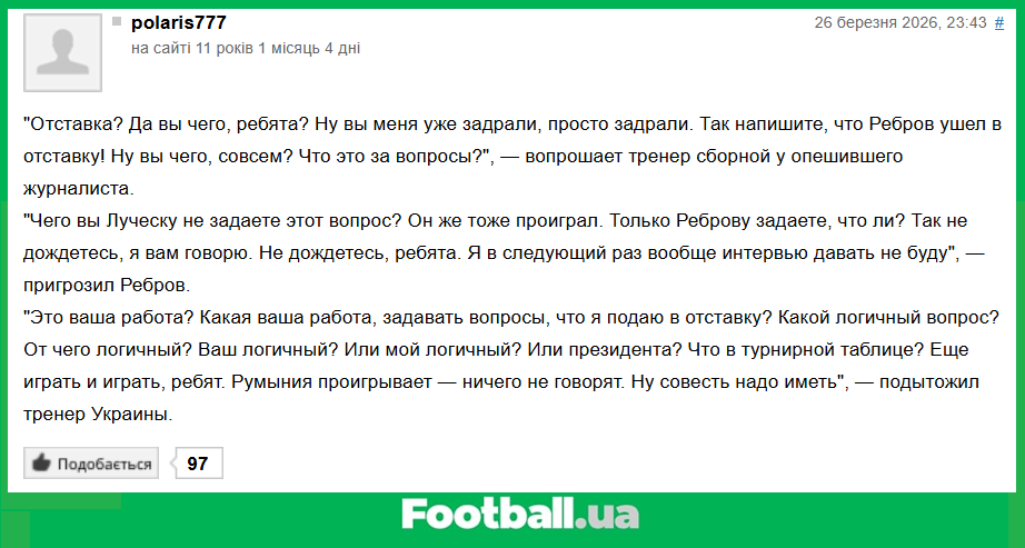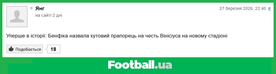 P. S. Цікавих подій у світі футболу за минулий тиждень було достатньо, тому вкотре хочеться перепросити авторів інших смішних коментарів, які з певних причин не потрапили в сьогоднішній огляд. Моніторинг всіх ваших реакцій на ту чи іншу новину, навіть за такий незначний період, займає багато часу. Саме тому немає можливості побачити усі ваші коментарі.