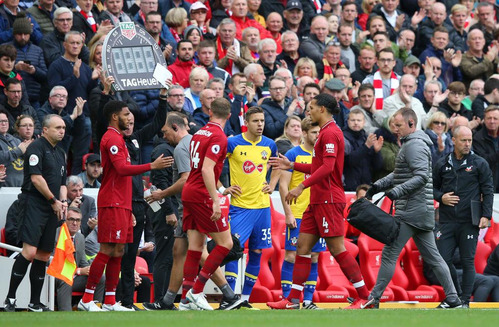 Предельно заряженный на борьбу Саутгемптон не замечал сопротивления со стороны соперника, и уже за первые десять минут "святым" удалось провести первый мяч в данной встрече. Мягкий заброс с левого фланга в штрафную от Бертранда пришелся точно на голову Хойбергу, который затылком продлил полет мяча в направлении Лонга. Робертсон оказался в непростом положении, будучи вынужденным "разрываться" между двумя игроками соперника, и попросту не успел за темпом развития атаки команды напротив. В итоге, Лонг оказался перед Алиссоном совершенно один, и с легкостью расстрелял ворота бразильского голкипера.