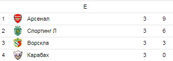 После трех сыгранных туров турнирная таблица группы Е выглядит следующим образом:
