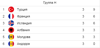 Турнирное положение в группе Н перед стартом 4-го тура:
