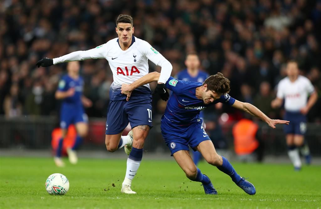 В ответном матче 1/2 финала Кубка английской лиги Челси принимал Тоттенхэм. Маурицио Сарри выпустил стартовый состав, приближенный к оптимальному, а вот его визави Маурисио Почеттино был вынужден обходиться сразу без трех ключевых исполнителей – команда не может рассчитывать на услуги Кейна, Алли и Сон Хын Мина, так что атакующий потенциал "шпор" был на порядок ниже.