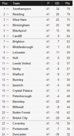 После этого тура Рэдинг имеет одинаковое количество очков с Саутг
