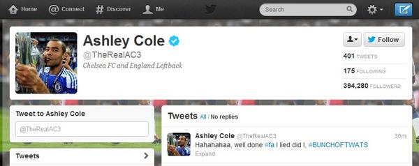 В своем твиттере Эшли написал примерно следующее: "Хахахахаа, молодцы, ФА. Получается, я врал. #Сборище подонков". Правда, эта запись вскоре исчезла со страницы Коула.