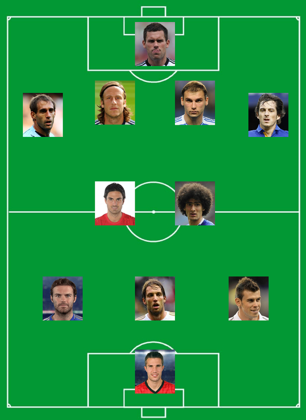 Фостер - Сабалета, Ольссон, Иванович, Бэйнс - Артета, Феллаини - Мата, Мичу, Бэйл - ван Перси