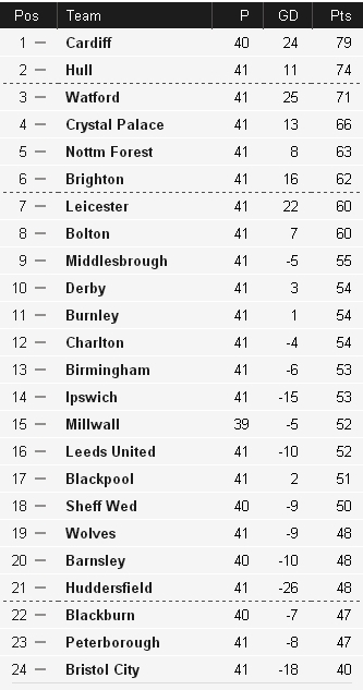 Если учитывать, что автоматически в Премьер-лигу проходит два клуба, то третья команда, то есть, Уотфорд, а не Халл — главный соперник Кардиффа на данный момент. Поэтому команде Малки Маккая ни в коем случае нельзя было проигрывать на поле Шершней. Можно конечно, но тогда удачный сезон точно бы имел нервную концовку.