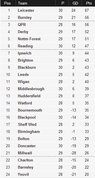 Бомбардиры: Маккормак (Лидс) — 22, Ингс (Бернли) — 19, Роудс (Блэкберн) — 16, Ньюджент (Лестер) — 15.