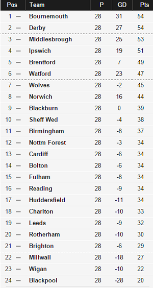 Бомбардиры: Мерфи (Ипсвич) — 18, Мартин (Дерби) — 16, Ассомбалонга (Ноттингем) — 14.