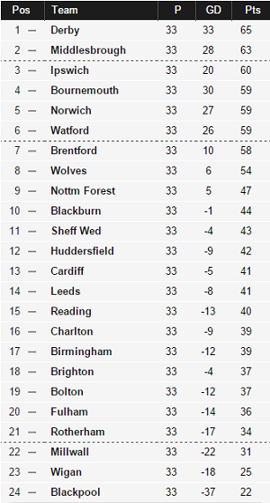 По ходу текущего сезона в Чемпионшипе события столько раз менялись, что и нынешнюю ситуацию нельзя называть окончательной. Однако если бы сезон завершался сейчас, то Дерби и Миддлсбро больше всех бы заслуживали прямого попадания в Премьер-лигу. По общим качествам эти две команды сейчас выглядят сильнее всех в дивизионе.