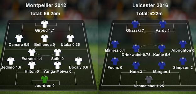 - по итогам 28 туров успешного сезона у них было по 57 очков. Монпелье отставал на 2 пункта от ПСЖ, а Лестер лидирует;
