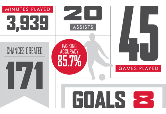 В сезоне 2015/16 27-летний немец выходил на поле в 45-ти матчах, сыграв суммарно 3939 минут. Чемпион мира-2014 отдал 20 результативных передач в АПЛ, что является рекордом лиги.