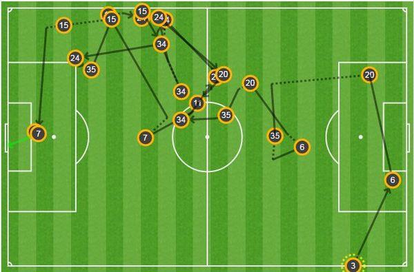 22 – гол Санчеса случился после 22-х точных передач его партнеров, что стало наибольшим количеством удачных пасов предшествующих забитому мячу в текущем сезоне;