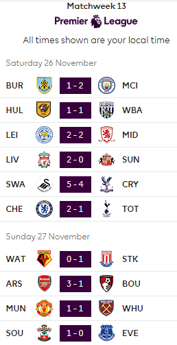 Football.ua подводит итоги тринадцатого тура английской Премьер-лиги.