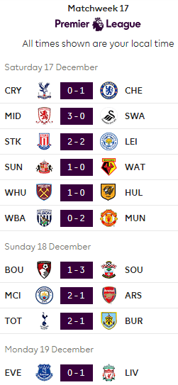 Football.ua подводит итоги семнадцатого тура английской Премьер-лиги.