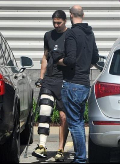 Ибрагимович уже передвигается с помощью костылей, Splash News