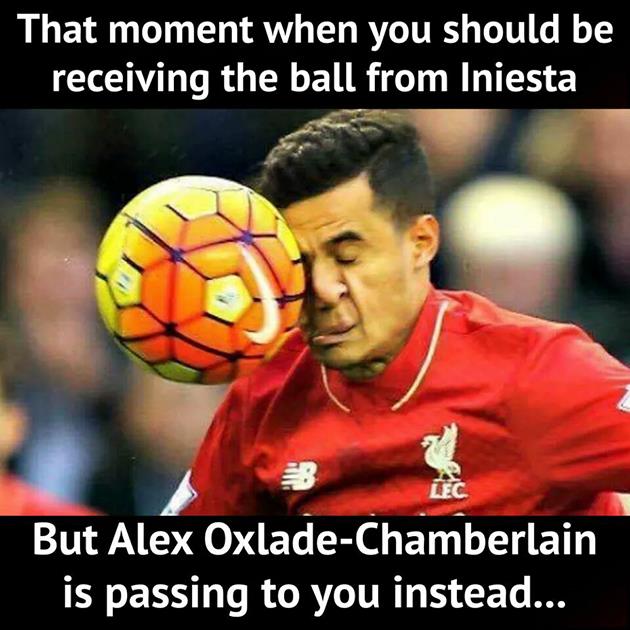 Тот момент, когда ты надеялся уже получать пасы от Иньесты, а вместо этого тебе пасует Алекс Окслейд-Чемберлен...