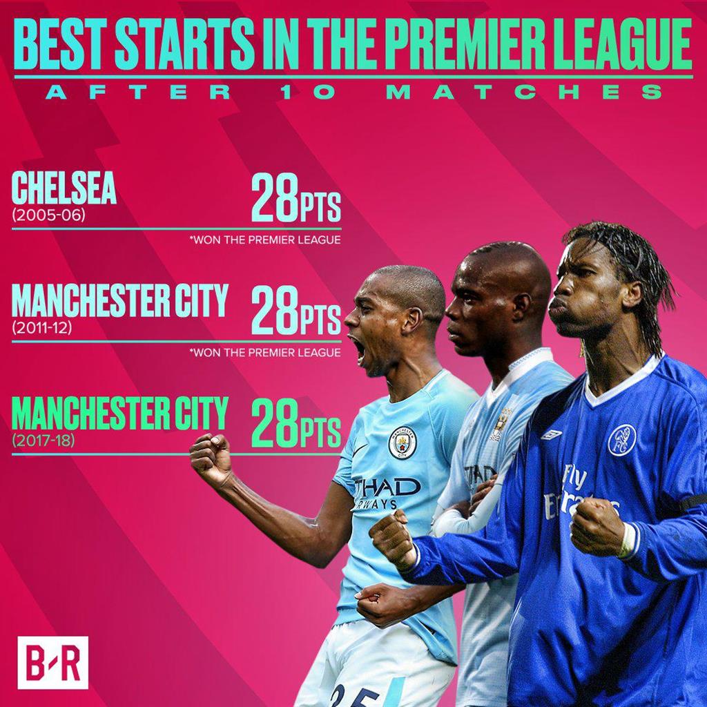 28 – Манчестер Сити выдал лучший старт в истории Премьер-лиги, набрав 28 очков в первых 10 матчах при разнице мячей +29.