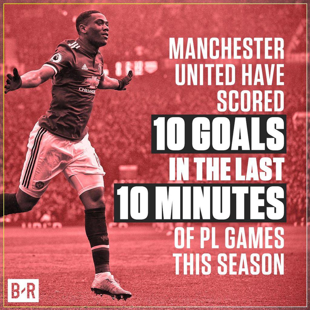 43% — МЮ забил 10 голов после 80 минут матча – 43% от общего количества.
