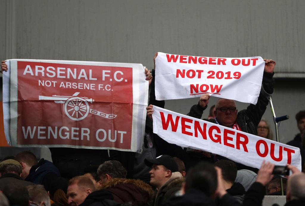 Не счесть, на скольких стадионах, да и не только появлялись плакаты "Wenger Out". Самолет пролетал с этой надписью над аренами Премьер-лиги. Сборная Украины увидела такой баннер на трибунах в игре с Финляндией, и даже на матче Новой Зеландии против Фиджи кто-то требовал отставки Венгера.